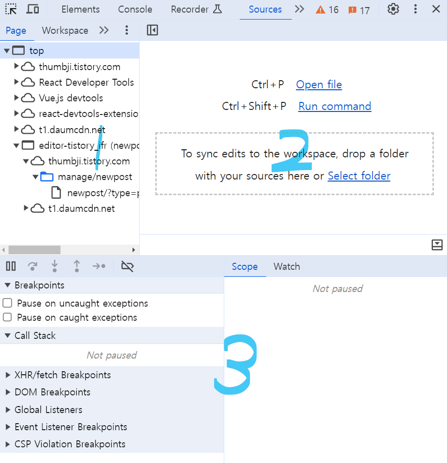 자바스크립트 디버깅 영역 - 디버깅에 관련된 기능을 제공